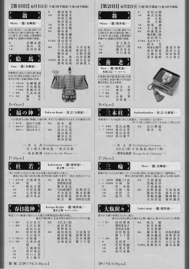 1日演目◇「翁」「絵馬」火入れ式「杜若恋之舞」「春日龍神龍女之舞」